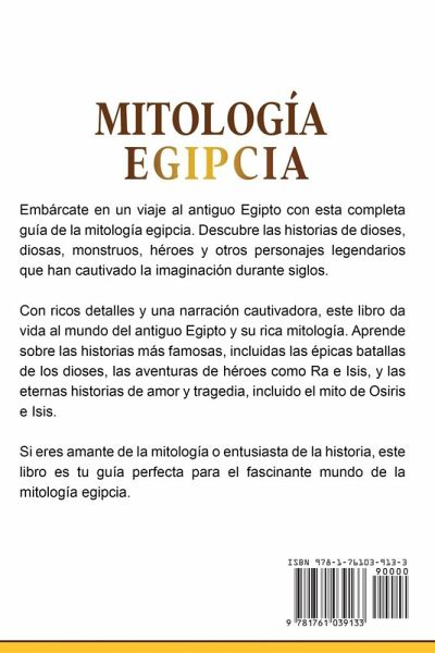 Mitología Egipcia Descubre los secretos del antiguo Egipto con esta guía completa de la mitología egipcia. ¿Te cautiva el mundo místico y enigmático del antiguo Egipto y estás ansioso por explorar el rico tapiz de la mitología que se ha tejido en la historia y la cultura de esta antigua civilización? No busques más allá de esta guía completa de la mitología egipcia. En este libro, te embarcarás en un viaje por el fascinante mundo de la mitología egipcia y descubrirás las épicas historias de dioses, diosas, monstruos, héroes y otros personajes legendarios que han cautivado la imaginación durante siglos. Con ricos detalles y una narración cautivadora, este libro da vida al mundo del antiguo Egipto y su rica mitología, brindándote una visión general completa y atractiva de las historias más famosas. Si eres amante de la mitología o entusiasta de la historia, este libro es tu guía perfecta para el fascinante mundo de la mitología egipcia. Con una narración vívida y rica en detalles, serás transportado a un mundo de dioses y diosas, monstruos y milagros, y batallas épicas que han cautivado tu imaginación durante siglos. Entonces, ¿por qué esperar? ¡Ordena tu copia de esta guía completa de la mitología egipcia hoy y desbloquea el poder de esta antigua civilización para obtener mayores niveles de comprensión, conocimiento e inspiración!