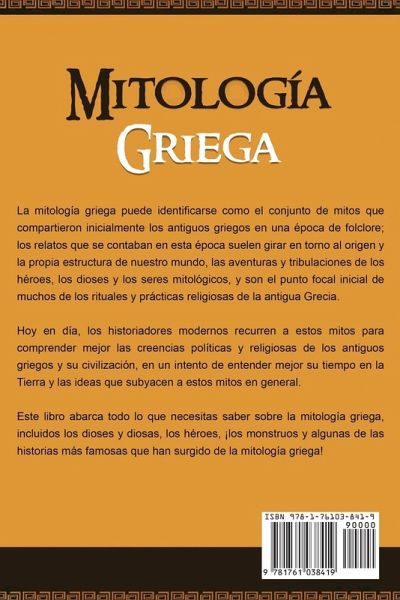 Mitología Griega Experimenta la magia y la maravilla de la mitología griega como nunca antes con este libro cautivador y exhaustivo que abarca todos los cuentos y personajes famosos que han cautivado a la gente durante siglos. Desde el mito griego de la creación, donde el mundo se forma a partir del caos, hasta las épicas batallas entre los dioses y los Titanes, este libro explora todo el espectro de la mitología griega. Descubre las fascinantes historias de los dioses y diosas griegos, desde Zeus, el rey de los dioses, hasta Atenea, la diosa de la sabiduría y la guerra, y aprende sobre sus funciones e importancia en la mitología. Explora las épicas historias de héroes y monstruos, incluido el legendario semidiós Heracles y sus doce trabajos, y la historia del Minotauro y el laberinto. Conoce a los fascinantes semidioses, mitad humanos y mitad dioses, como el poderoso Perseo y el feroz Aquiles. Con una narración emocionante y rica en detalles, este libro es la guía definitiva de la mitología griega. Tanto si eres un entusiasta de la mitología como si simplemente buscas aventuras, este libro es de lectura obligada. No pierdas la oportunidad de sumergirte en la magia y las maravillas de la mitología griega. Consigue tu ejemplar hoy mismo y vive las historias atemporales que han cautivado a la gente durante siglos.