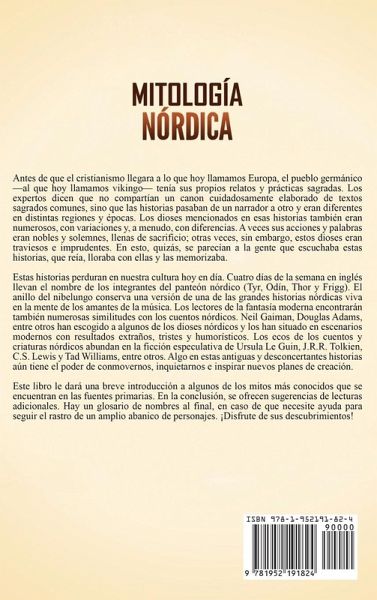 Descubra los fascinantes mitos de los dioses y héroes nórdicos Las historias de la mitología nórdica perduran en nuestra cultura actual. El anillo del nibelungo conserva una versión de una de las grandes historias nórdicas viva en la mente de los amantes de la música. Los lectores de la fantasía moderna encontrarán también numerosas similitudes con los cuentos nórdicos. Algo en estas antiguas y desconcertantes historias aún tiene el poder de conmovernos, inquietarnos e inspirar nuevos planes de creación. Este libro le dará una breve introducción a algunos de los mitos más conocidos que se encuentran en las fuentes primarias. Se incluye un glosario de nombres en la parte posterior en caso de que necesite ayuda para seguir el rastro de un amplio abanico de personajes. ¡Disfrute de sus descubrimientos! Este libro cubre los siguientes mitos y temas nórdicos:La creación de los mundos La construcción de Asgard ¿Por qué Odín tiene un ojo y Tyr una mano? El aguamiel de la poesía Loki el ladrón Amor y conflicto Amor y conflicto Las aventuras de Thor en Utgard Odín el anfitrión y Odín el invitado Odín el anfitrión y Odín el invitado Regin y Sigfrido Sigfrido y el dragón El matrimonio de Sigfrido La traición de Brunilda La muerte de Sigfrido La muerte de Balder Ragnarök Nota final: La historia de Hrólfr Kraki ¡Consiga este libro ahora para aprender más sobre la mitología nórdica!