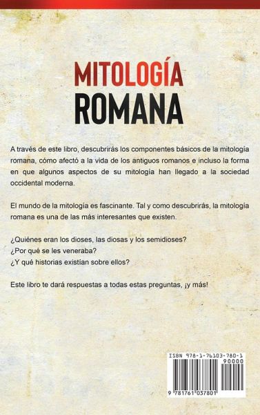 Mitología Romana Descubre la rica historia y mitología de la Antigua Roma con este libro cautivador e informativo que lleva a los lectores en un viaje a través del tiempo para explorar el fascinante mundo de la mitología romana. A través de una detallada investigación y una atractiva narración, este libro explora cómo era la vida en la Antigua Roma y presenta a los lectores a los dioses y diosas que eran adorados por los antiguos romanos. Desde Júpiter, el rey de los dioses, hasta Venus, la diosa del amor y la belleza, cada deidad cobra vida con fascinantes datos sobre su mitología y su importancia en la cultura romana. En este libro se ofrece una visión única y apasionante del mundo de la mitología romana. Proporciona a los lectores un profundo conocimiento de la cultura y las creencias de la Antigua Roma, y de cómo los mitos y leyendas de los dioses y diosas conformaban la vida cotidiana de la gente. Tanto si es un entusiasta de la mitología como si simplemente busca una aventura, este libro es de lectura obligada. Experimenta la magia y las maravillas de la Antigua Roma con esta completa guía de la mitología romana. No pierdas la oportunidad de sumergirte en el cautivador mundo de la mitología romana. Consigue tu ejemplar hoy mismo y descubre las historias y leyendas intemporales que han cautivado la imaginación de la gente durante siglos.