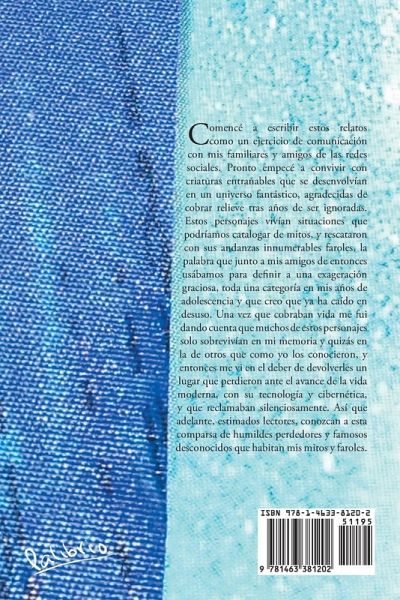 Comencé a escribir estos relatos como un ejercicio de comunicación con mis familiares y amigos de las redes sociales. Pronto empecé a convivir con criaturas entrañables que se desenvolvían en un universo fantástico, agradecidas de cobrar relieve tras años de ser ignoradas. Estos personajes vivían situaciones que podríamos catalogar de mitos, y rescataron con sus andanzas innumerables faroles, la palabra que junto a mis amigos de entonces usábamos para definir a una exageración graciosa, toda una categoría en mis años de adolescencia y que creo que ya ha caído en desuso. Una vez que cobraban vida me fui dando cuenta que muchos de estos personajes solo sobrevivían en mi memoria y quizás en la de otros que como yo los conocieron, y entonces me vi en el deber de devolverles un lugar que perdieron ante el avance de la vida moderna, con su tecnología y cibernética, y que reclamaban silenciosamente. Así que adelante, estimados lectores, conozcan a esta comparsa de humildes perdedores y famosos desconocidos que habitan mis mitos y faroles.