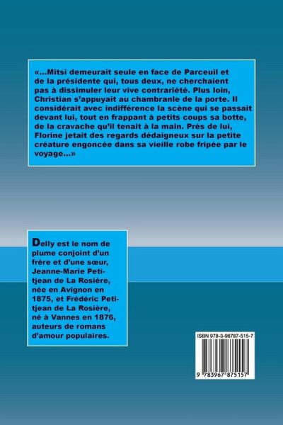 ...Mitsi demeurait seule en face de Parceuil et de la présidente qui, tous deux, ne cherchaient pas à dissimuler leur vive contrariété. Plus loin, Christian s'appuyait au chambranle de la porte. Il considérait avec indifférence la scène qui se passait devant lui, tout en frappant à petits coups sa botte, de la cravache qu'il tenait à la main. Près de lui, Florine jetait des regards dédaigneux sur la petite créature engoncée dans sa vieille robe fripée par le voyage...