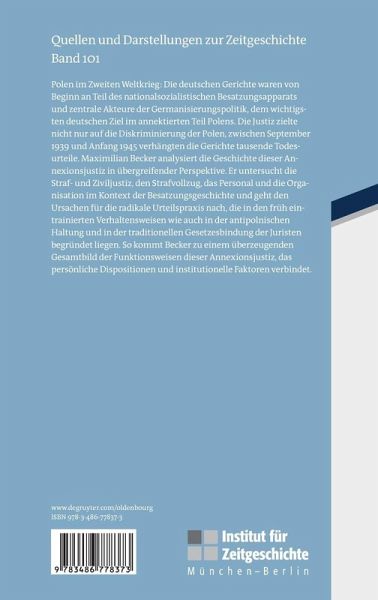 Polen im Zweiten Weltkrieg: Die deutschen Gerichte waren von Beginn an Teil des nationalsozialistischen Besatzungsapparats und zentrale Akteure der Germanisierungspolitik, dem wichtigsten deutschen Ziel im annektierten Teil Polens. Die Justiz zielte nicht nur auf die Diskriminierung der Polen, zwischen September 1939 und Anfang 1945 verhängten die Gerichte tausende Todesurteile. Maximilian Becker analysiert die Geschichte dieser Annexionsjustiz in übergreifender Perspektive. Er untersucht die Straf- und Ziviljustiz, den Strafvollzug, das Personal und die Organisation im Kontext der Besatzungsgeschichte und geht den Ursachen für die radikale Urteilspraxis nach, die in den früh eintrainierten Verhaltensweisen wie auch in der antipolnischen Haltung und in der traditionellen Gesetzesbindung der Juristen begründet liegen. So kommt Becker zu einem überzeugenden Gesamtbild der Funktionsweisen dieser Annexionsjustiz, das persönliche Dispositionen und institutionelle Faktoren verbindet.