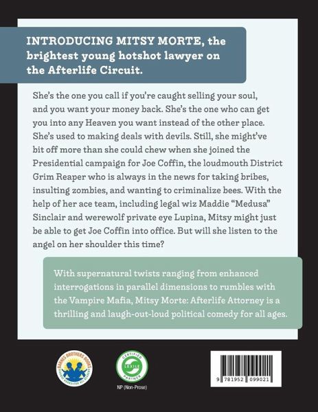 Introducing Mitsy Morte, the brightest young hotshot lawyer on the Afterlife Circuit. She's the one you call if you're caught selling your soul, and you want your money back. She's the one who can get you into any Heaven you want instead of the other place. She's used to making deals with devils. Still, she might've bit off more than she could chew when she joined the Presidential campaign for Joe Coffin, the loudmouth District Grim Reaper who is always in the news for taking bribes, insulting zombies, and wanting to criminalize bees. With the help of her ace team, including legal wiz Maddie "Medusa" Sinclair and werewolf private eye Lupina, Mitsy might just be able to get Joe Coffin into office. But will she listen to the angel on her shoulder this time? With supernatural twists ranging from enhanced interrogations in parallel dimensions to rumbles with the Vampire Mafia, Mitsy Morte: Afterlife Attorney is a thrilling and laugh-out-loud political comedy for all ages.