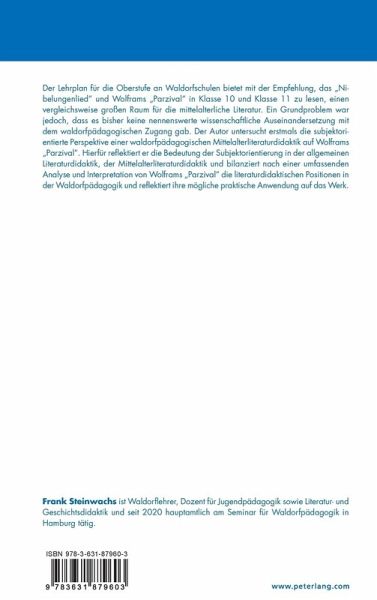 Der Lehrplan für die Oberstufe an Waldorfschulen bietet mit der Empfehlung, das "Nibelungenlied" und Wolframs "Parzival" in Klasse 10 und Klasse 11 zu lesen, einen vergleichsweise großen Raum für die mittelalterliche Literatur. Ein Grundproblem war jedoch, dass es bisher keine nennenswerte wissenschaftliche Auseinandersetzung mit dem waldorfpädagogischen Zugang gab. Der Autor untersucht erstmals die subjektorientierte Perspektive einer waldorfpädagogischen Mittelalterliteraturdidaktik auf Wolframs "Parzival". Hierfür reflektiert er die Bedeutung der Subjektorientierung in der allgemeinen Literaturdidaktik, der Mittelalterliteraturdidaktik und bilanziert nach einer umfassenden Analyse und Interpretation von Wolframs "Parzival" die literaturdidaktischen Positionen in der Waldorfpädagogik und reflektiert ihre mögliche praktische Anwendung auf das Werk.