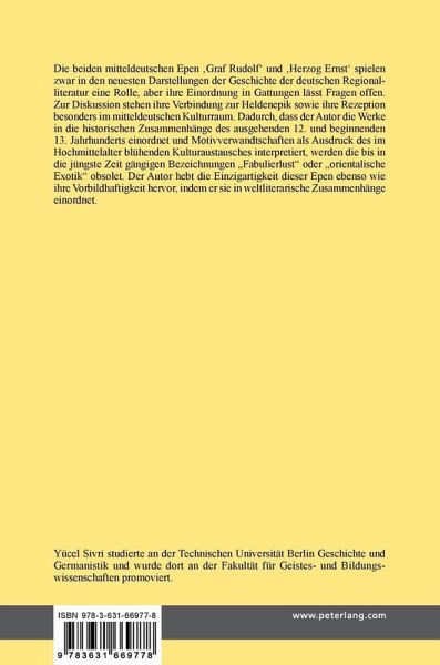 Die beiden mitteldeutschen Epen "Graf Rudolf" und "Herzog Ernst" spielen zwar in den neuesten Darstellungen der Geschichte der deutschen Regionalliteratur eine Rolle, aber ihre Einordnung in Gattungen lässt Fragen offen. Zur Diskussion stehen ihre Verbindung zur Heldenepik sowie ihre Rezeption besonders im mitteldeutschen Kulturraum. Dadurch, dass der Autor die Werke in die historischen Zusammenhänge des ausgehenden 12. und beginnenden 13. Jahrhunderts einordnet und Motivverwandtschaften als Ausdruck des im Hochmittelalter blühenden Kulturaustausches interpretiert, werden die bis in die jüngste Zeit gängigen Bezeichnungen "Fabulierlust" oder "orientalische Exotik" obsolet. Der Autor hebt die Einzigartigkeit dieser Epen ebenso wie ihre Vorbildhaftigkeit hervor, indem er sie in weltliterarische Zusammenhänge einordnet.