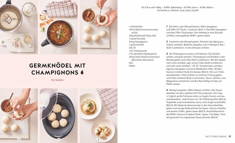 Easy Start in die breifrei Babyernährung. Keine Mahlzeit ist bedeutender als die erste selbstgekochte für unsere Kleinsten! Mit dem Thermomix wird es kinderleicht, täglich Abwechslung auf den Teller zu zaubern - und das im Handumdrehen! Diese Küchenmaschine wird schnell zum unverzichtbaren Helfer für die breifreie Babyernährung: Sie dämpft, kocht und brät mühelos. Einfach ein paar frische Zutaten in den Mixtopf oder den Varoma-Aufsatz geben, die richtige Stufe und Zeit einstellen - und schon ist das Fingerfood bereit. Schnell, schonend und gesund steht die Mahlzeit auf dem Tisch. Das macht nicht nur den Kleinen Freude, sondern spart den Eltern wertvolle Zeit!