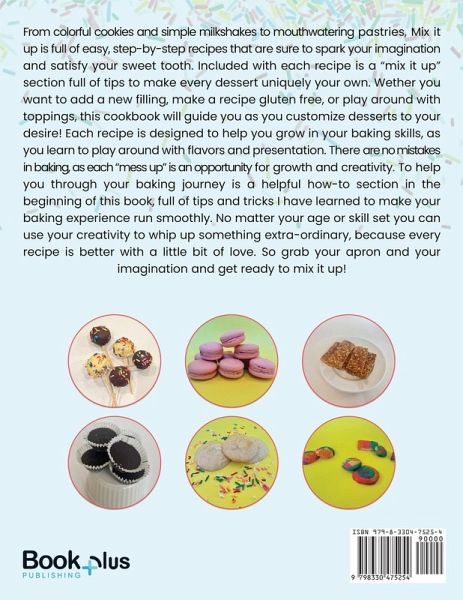 From colorful cookies and simple milkshakes to mouthwatering pastries, Mix it Up is full of easy, step-by-step recipes that are sure to spark your imagination and satisfy your sweet tooth. Included with each recipe is a "mix it up" section full of tips to make every dessert uniquely your own. Whether you want to add a new filling, make a recipe gluten-free, or play around with toppings, this cookbook will guide you as you customize desserts to your desire! Each recipe is designed to help you grow in your baking skills as you learn to play around with flavors and presentation. There are no mistakes in baking, as each "mess up" is an opportunity for growth and creativity. To help you through your baking journey is a helpful how-to section in the beginning of this book, full of tips and tricks I have learned to make your baking experience run smoothly. No matter your age or skill set, you can use your creativity to whip up something extraordinary because every recipe is better with a little bit of love. So grab your apron and your imagination and get ready to mix it up!