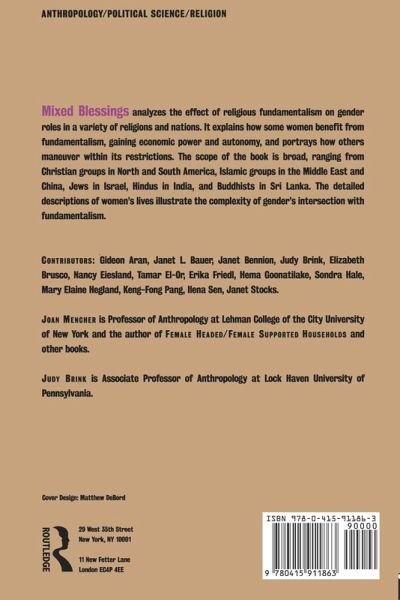 Taking a woman-centered approach, Mixed Blessings analyzes the effect of religious fundamentalism on gender roles in a variety of religions and nations. It explains how some women benefit from fundamentalism, gaining economic power and autonomy, and portrays how others maneuver within its restrictions. The scope of the book is broad, ranging from Christian groups in North and South America, Islamic groups in the Middle East and China, Jews in Israel, Hindus in India, and Buddhists in Sri Lanka. The detailed descriptions of women's lives illustrate the complexity of the intersection of gender and fundamentalism. The impact of fundamentalism for some women has been beneficial and has lead to greater economic power and autonomy. In other areas women must maneuver within the constraints of fundamentalism to gain power and autonomy.