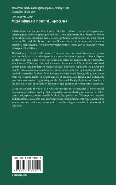 This book reviews the potential of mixed microbial cultures in industrial bioprocesses, offering groundbreaking insights and practical applications. It addresses different applications and challenges and discusses potential solutions for utilizing mixed cultures. Through this book, readers will learn about the latest advancements in microbial bioprocessing, from innovative fermentation techniques to sustainable waste management solutions.