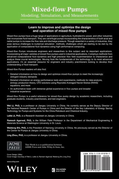 Mixed-flow Pumps Modeling, Simulation, and Measurements Learn to improve and optimize the design and operation of mixed-flow pumps Mixed-flow pumps have a huge range of applications in agriculture, hydroelectric power, and other industries that incorporate fluid transport. They are centrifugal pumps incorporating the characteristics of both axial and radial pumps to increase the flow rate and discharge pressure. Though essential in a variety of industries, they pose serious challenges to numerical simulation methods, challenges which are starting to be met by the application of computational fluid dynamics using high-performance computing. Mixed-flow Pumps introduces engineers and researchers to this subject and its important applications. Incorporating all major varieties of mixed-flow pumps used in industrial applications, it employs methods from advanced computational fluid dynamics and high-precision flow field experimentation to characterize and analyze these crucial technologies. Moving from the fundamentals of the technology to its most advanced applications, it's an essential resource for engineers and industry practitioners looking to develop their understanding of fluid transport. Mixed-flow Pumps readers will also find: * Detailed information on how to design and optimize mixed-flow pumps to meet the increasingly stringent industry demands * Detailed information on energy performance tests and experiments, methods for data analysis, entropy production theory, CFD solutions using Reynolds-Averaged Navier-Stokes (RANS) equations, and more * An authoritative team with immense global experience in flow pumps and broader industrial experience Mixed-flow Pumps is a useful reference for mixed-flow pump design by academic researchers, including graduate students, industry practitioners, and test engineers.