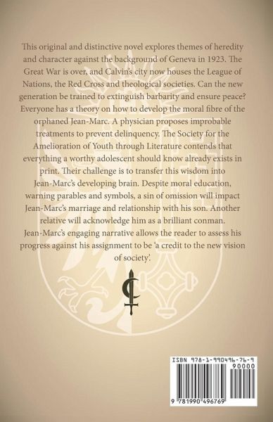 This original and distinctive novel explores themes of heredity and character against the background of Geneva in 1923. The Great War is over, and Calvin's city now houses the League of Nations, the Red Cross and theological societies. Can the new generation be trained to extinguish barbarity and ensure peace? Everyone has a theory on how to develop the moral fibre of the orphaned Jean-Marc. A physician proposes improbable treatments to prevent delinquency. The Society for the Amelioration of Youth through Literature contends that everything a worthy adolescent should know already exists in print. Their challenge is to transfer this wisdom into Jean-Marc's developing brain. Despite moral education, warning parables and symbols, a sin of omission will impact Jean-Marc's marriage and relationship with his son. Another relative will acknowledge him as a brilliant conman. Jean-Marc's engaging narrative allows the reader to assess his progress against his assignment to be 'a credit to the new vision of society'.