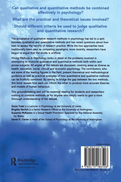 Can qualitative and quantitative methods be combined effectively in psychology? What are the practical and theoretical issues involved? Should different criteria be used to judge qualitative and quantitative research? The acceptance of qualitative research methods in psychology has lead to a split between qualitative and quantitative methods and has raised questions about how best to assess the validity of research practice. While the two approaches have traditionally been seen as competing paradigms, more recently, researchers have begun to argue that the divide is artificial. Mixing Methods in Psychology looks in detail at the problems involved in attempting to reconcile qualitative and quantitative methods both within and across subjects. All angles of the debate are discussed, covering areas as diverse as health, education, social, clinical and economic psychology. The contributors, who are some of the leading figures in the field, present theoretical and methodological guidance as well as practical examples of how quantitative and qualitative methods can be fruitfully combined. By aiming to bridge the gap between the two methods, this book reveals how each can inform the other to produce more accurate theories and models of human behaviour. This groundbreaking text will be essential reading for students and researchers wishing to combine methods, or for anyone who simply wants to get a better understanding of the debate.