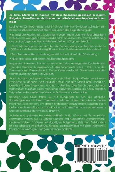 15 Jahre Erfahrung im Kochen mit dem Thermomix gebündelt in diesem Ratgeber - Diese genialen Tricks kennen selbst erfahrene Repräsentantinnen nicht: Laut einer Onlineumfrage sind 87 % der Thermomix-Nutzer zufrieden mit ihrem Gerät. Doch schnell flacht bei vielen die Begeisterung ab: Es setzt die Routine ein: Zubereitet werden immer wieder dieselben Rezepte. Die wenigsten schöpfen die Funktionen ihres Thermomix vollständig aus: Aufregende Kocherlebnisse bleiben völlig unentdeckt! Viele Menschen kennen sich bei der Verwendung von Zubehör nicht zu 100% aus - ein falscher Handgriff kann teure Schäden nach sich ziehen! Zehntausende Nutzer verbringen zu viel Zeit mit der Säuberung Nützliche Tricks, Hilfsmittel oder Zusatzgeräte sind vielen Deutschen unbekannt Insgesamt kommen Nutzer so nicht auf das aufregende Kocherlebnis, was den Thermomix auszeichnen kann. Das Schlimmste wäre wohl, wenn der Thermomix mit Eismaschine & Co im Keller verstaubt. Dann wäre aus der teuren Investition nichts geworden! Autorin und gelernte Hauswirtschafterin Katja Winter kennt die Probleme zu genüge. Seit 2004 der TM31 auf den Markt kam, kocht sie bereits mit dem Thermomix. Und hat dabei vieles falsch gemacht: Von einer kaputten Waage bis hin zu hartnäckigen Teigresten oder verklebten Varoma Schlitzen war alles dabei. Über die Jahre lernte sie nicht nur Tricks kennen, um vielen kleinen Problemchen vorzubeugen, sondern auch dutzende clevere Tipps, um das Kochen mit dem Thermomix zu erleichtern und gleichzeitig auf Sternekoch-Niveau zu bringen. Nun hat sie ihr erprobtes Wissen aus 15 Jahren und hunderten Gesprächen mit anderen Nutzern und Repräsentantinnen in diesem einzigartigen Ratgeber gebündelt. Entstanden ist eine absolute Pflichtlektüre für alle, die regelmäßig mit dem Thermomix kochen. Das hier findest du im Buch: Über 100 clevere Tipps, um das volle Potenzial aus deiner Thermomix Investition zu holen (und ab sofort noch mehr Spaß dabei zu haben). Koche ab jetzt nicht mehr weiter mit dem Thermomix ohne diese Tricks! (Geeignet für TM31, TM5 und TM6) Wie kleine Änderungen bei der Zubereitung den Geschmack der Gerichte erheblich verbessern Wie du mit wenigen Handgriffen den Thermomix strahlend sauber bekommst, selbst bei lästigen Teigresten Welche Zusatzprodukte sich wirklich lohnen: Kombiniere andere Küchengeräte clever mit dem Thermomix und erschließe dir neue kulinarische Horizonte Keine Lust mehr auf Fertigprodukte? Finde heraus, welche gesunden Produkte du auch selbst herstellen kannst. Mache Schritt für Schritt den Weg in eine nachhaltigere, gesündere Ernährungsweise (inkl. Kapitel zum Abnehmen mit dem Thermomix) Wohin mit den Resten? Lebensmittel sind zu schade für die Tonne. Setze den Thermomix für eine kreative Resteverwertung ein: Gut für die Umwelt und den Geldbeutel Vorsicht vor schlimmen Schäden am Gerät: Mache diese Handgriffe lieber nicht… Lässt sich der Ton vom Thermomix ausschalten? Antwort auf Seite 55 Wer regelmäßig mit dem Thermomix kocht, kommt an diesem Buch nicht vorbei.