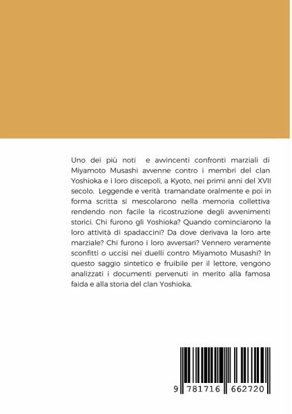 Edizione ridotta e revisionata tratta da, Yoshioka: tintori e spadaccini del Giappone feudale, 1540-1615 Chi furono gli Yoshioka? Quando cominciarono la loro attività di spadaccini? Da dove derivava la loro arte marziale? Chi furono i loro avversari? Vennero veramente sconfitti o uccisi nei duelli contro Miyamoto Musashi? In questo saggio reso più sintetico e fruibile per il lettore si analizzano i documenti pervenuti in merito a questa famosa faida e alla storia del clan Yoshioka.