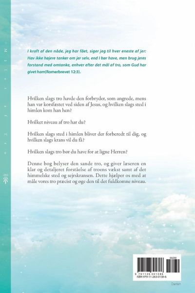 Målet af Tro er sammen med den nyligt udgivede Budskabet fra Korset fundamentale og væsentlige vejledninger til et godt kristent liv. Jeg takker og ærer Gud Fader, som velsignede dette værdifulde værk til at blive udgivet, og som åbenbarer det spirituelle rige for utallige mennesker. I dag er der mange mennesker, som påstår, at de tror, men som ikke er sikre på frelse. De kender ikke troens mål og ved ikke, hvor stor tro, der bør have, for at opnå frelse. Folk siger til hinanden: "Denne mand har stor tro", eller "Denne mands tro er lille." Men det er ikke let at vide, hvor meget af troen, Gud rent faktisk godtager, og hvordan man kan bedømme troens mål og vækst. Gud ønsker ikke, at vi skal have kødelig tro, men derimod spirituel tro, som er ledsaget af handlinger. Kødelig tro er, at folk hører og lærer Guds ord, og derefter husker på det som ren viden. Vi kan ikke have spirituel tro af egen vilje; den gives kun af Gud. Det er derfor, der står følgende tilskyndelse i Romerbrevet 12:3: "I kraft af den nåde, jeg har fået, siger jeg til hver eneste af jer: Hav ikke højere tanker om jer selv, end I bør have, men brug jeres forstand med omtanke, enhver efter det mål af tro, som Gud har givet ham." Denne passage fortæller os, at hvert individ har sin egen spirituelle tro givet af Gud, og hans svar og velsignelser vil variere afhængigt af målet af tro. I Første Johannesbrev 2:12 og følgende vers skildres et menneskets vækst i troen som troen hos henholdsvis småbørn, børn, unge og fædre. I Første Korintherbrev 15:41 står der: "Solen og månen og stjernerne har hver sin glans, og stjerne adskiller sig fra stjerne i glans." Denne passage minder os om, at hvert individs himmelske bolig og herlighed vil afhænge af målet at vedkommendes tro. Det er vigtigt at blive frelst og at komme i himlen, men det er endnu vigtigere at vide, hvilken bolig og hvilken slags krone og belønning vi vil modtage. Kærlighedens Gud ønsker, at hans børn skal vokse sig fuldkomne i troen, og glæder sig til, at de kommer til Ny Jerusalem, hvor hans trone står, og længes efter at være sammen med dem til evig tid. I overensstemmelse med Guds hjerte og ordets belæring belyser Målet af Tro fem forskellige niveauer af tro og af det himmelske rige, og hjælper læseren med at bedømme niveauet af egen tro. Målet af tro og de himmelske boliger kan inddeles i mere end fem niveauer, men de er her inddelt på denne måde af hensyn til læserens forståelse. Jeg håber, at du vil gå mere ivrigt frem mod himlen ved at sammenligne målet af din tro med troens forfædre i Bibelen. For mange år siden bad jeg for, at de vanskelige bibelvers skulle blive åbenbaret for mig. En dag begyndte Gud så at forklare mig, at det himmelske rige er opdelt, og at de himmelske boliger fordeles mellem hans børn afhængigt af målet af deres tro.