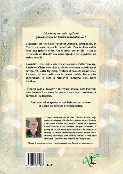Découvrez un conte captivant qui transcende les limites du traditionnel ! L'histoire est celle que vécurent Antoine, journaliste, et Claire, danseuse, après la découverte d'un tableau oublié dans une galerie d'art. Un tableau qui révèle l'essence envoûtante de Mélodie, une muse répudiée par le peintre, un artiste maudit.Ensemble, entre toiles colorées et moments d'effervescence, Antoine et Claire vont alors explorer les secrets artistiques et navigueront entre légendes, rivalités et passions amoureuses. Au cours de leur quête vers la beauté caché derrière les apparences, ils vont se retrouver immergés dans leurs émotions...Préparez-vous à découvrir un voyage unique, dont l'univers vous invitera à repenser la manière dont nous racontons et percevons les histoires. Un conte, tel un spectacle, qui défie les conventions et élargit les horizons de l'imagination.