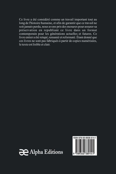 Mémoires du duc de Rovigo, pour servir à l'histoire de l'empereur Napoléon, Tome 7" est un livre classique, qui a eu une valeur significative tout au long de l'histoire, et pour garantir que sa sagesse intemporelle ne soit jamais perdue, Alpha Editions l'a soigneusement préservé en le republiant dans un format moderne et accessible aux générations présentes et futures. Soigneusement reformaté, retapé , et nouvellement conçue, cette édition offre un texte clair et lisible, sans copies numérisées de l'uvre originale, Alpha Editions se consacre à insuffler une nouvelle vie aux livres anciens et classiques, rendant ces trésors littéraires à nouveau disponibles pour les lecteurs qui chérissent l'histoire. culture et savoir intemporel.