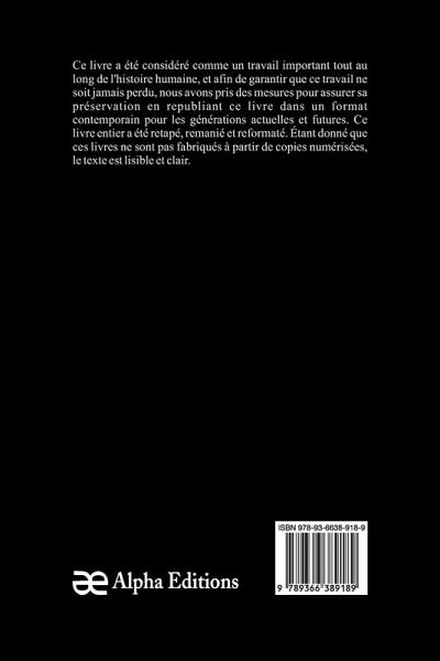 Mémoires d'une contemporaine. Tome 4; Souvenirs d'une femme sur les principaux personnages de la République, du Consulat, de l'Empire, etc"", constitue un phare dans le monde du livre, comblant le fossé entre le passé et le présent. Autrefois considéré parmi les livres anciens, cet ouvrage classique, comme tant de livres anciens et oubliés, a façonné notre compréhension de la culture et de l'histoire. exemple remarquable de livres d'histoire qui ont influencé des générations, et maintenant, grâce au dévouement d'Alpha Editions, votre éditeur de livres de confiance, il renaît dans un format frais et élégant. Nous avons soigneusement retapé, remanié et amélioré ce livre pour qu'il soit bien plus qu'un simple titre à lire. Vous pouvez désormais profiter de pages claires et faciles à lire, sans numérisation floue ni texte décoloré. En choisissant cette édition, vous investissez dans plus qu'un livre : vous sauvegardez un héritage. Votre soutien maintient en vie un morceau remarquable du patrimoine humain, garantissant que ses leçons et ses inspirations continuent de résonner dans le futur.