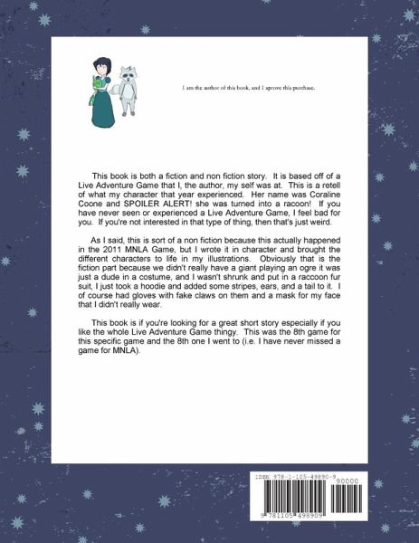This book tells about Coraline Coone's journey. This was based off of what happened to my character in the 2011 Live Adventure Game.
