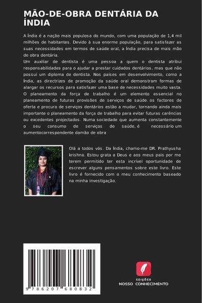 A Índia é a nação mais populosa do mundo, com uma população de 1,4 mil milhões de habitantes. Devido à sua enorme população, para satisfazer as suas necessidades em termos de saúde oral, a Índia precisa de mais mão de obra dentária.Um auxiliar de dentista é uma pessoa a quem o dentista atribui responsabilidades para o ajudar a prestar cuidados dentários, mas que não possui um diploma de dentista. Nos países em desenvolvimento, como a Índia, as directrizes de promoção da saúde oral demonstram formas de alargar os recursos para satisfazer uma base de necessidades muito vasta.O planeamento da força de trabalho é um elemento essencial no planeamento de futuras provisões de serviços de saúde. os factores de oferta e procura de serviços dentários estão a mudar, tornando ainda mais importante o planeamento da força de trabalho para evitar futuras carências ou excedentes projectados. Numa sociedade que aumenta constantemente o seu consumo de serviços de saúde, é necessário um aumentocorrespondente damão de obra
