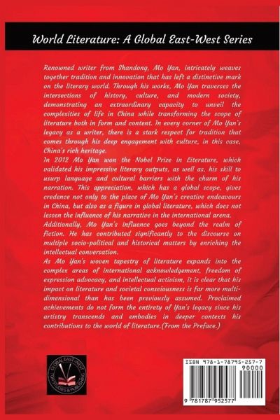 Renowned writer from Shandong, Mo Yan, intricately weaves together tradition and innovation that has left a distinctive mark on the literary world. Through his works, Mo Yan traverses the intersections of history, culture, and modern society, demonstrating an extraordinary capacity to unveil the complexities of life in China while transforming the scope of literature both in form and content. In every corner of Mo Yan's legacy as a writer, there is a stark respect for tradition that comes through his deep engagement with culture, in this case, China's rich heritage.In 2012 Mo Yan won the Nobel Prize in Literature, which validated his impressive literary outputs, as well as, his skill to usurp language and cultural barriers with the charm of his narration. This appreciation, which has a global scope, gives credence not only to the place of Mo Yan's creative endeavours in China, but also as a figure in global literature, which does not lessen the influence of his narrative in the international arena.Additionally, Mo Yan's influence goes beyond the realm of fiction. He has contributed significantly to the discourse on multiple socio-political and historical matters by enriching the intellectual conversation. As Mo Yan's woven tapestry of literature expands into the complex areas of international acknowledgement, freedom of expression advocacy, and intellectual activism, it is clear that his impact on literature and societal consciousness is far more multi-dimensional than has been previously assumed. Proclaimed achievements do not form the entirety of Yan's legacy since his artistry transcends and embodies in deeper contexts his contributions to the world of literature.(From the Preface.)