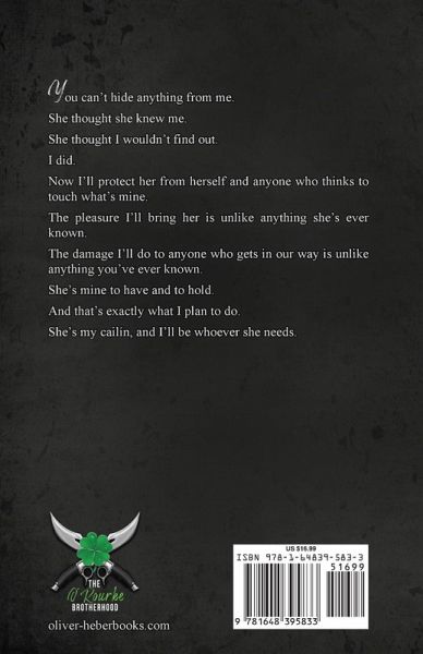 You can't hide anything from me. She thought she knew me. She thought I wouldn't find out. I did. Now I'll protect her from herself and anyone who thinks to touch what's mine. The pleasure I'll bring her is unlike anything she's ever known. The damage I'll do to anyone who gets in our way is unlike anything you've ever known. She's mine to have and to hold. And that's exactly what I plan to do. She's my cailín, and I'll be whoever she needs.