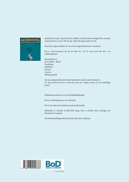 Mobbebarometrene er en del af Mobbehåndbogen. Mobbebarometrene giver dig der er ramt af mobning mulighed for, at sætte ord på en mobbesituation. Som det eneste redskab i verden, giver de et fællessprog til dig der er ramt af mobning. Det er for ofret, for forældrene og de professionelle. De giver dig mulighed for at sætte ind med hjælp og støtte, præcis der hvor det kræves. Se mere på mobbehåndbogen.dk