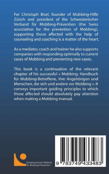 For Christoph Bisel, founder of Mobbing-Hilfe Zürich and president of the Schweizerischer Verband für Mobbing-Prävention (the Swiss association for the prevention of Mobbing), supporting those affected with the help of counseling and coaching is a matter of the heart.As a mediator, coach and trainer he also supports companies with responding optimally to current cases of Mobbing and preventing new cases.This book is a continuation of the relevant chapter of his successful » Mobbing: Handbuch für Mobbing-Betroffene, ihre Angehörigen und Menschen, die sich und andere vor Mobbing «. It conveys important guiding principles to which those affected should absolutely pay attention when making a Mobbing manual.