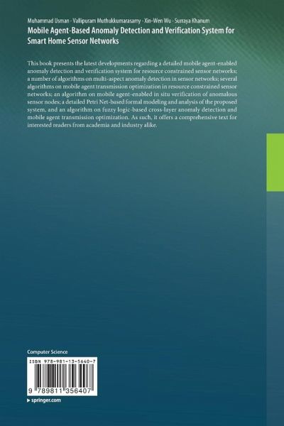 This book presents the latest developments regarding a detailed mobile agent-enabled anomaly detection and verification system for resource constrained sensor networks; a number of algorithms on multi-aspect anomaly detection in sensor networks; several algorithms on mobile agent transmission optimization in resource constrained sensor networks; an algorithm on mobile agent-enabled in situ verification of anomalous sensor nodes; a detailed Petri Net-based formal modeling and analysis of the proposed system, and an algorithm on fuzzy logic-based cross-layer anomaly detection and mobile agent transmission optimization. As such, it offers a comprehensive text for interested readers from academia and industry alike.