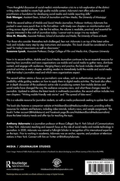 "With the second edition of Mobile and Social Media Journalism, Professor Anthony Adornato has packed in even more punch than in the first edition-with timely new chapters on misinformation and writing across digital platforms. Like the first edition, the volume is readable, practical, and essential for anyone interested in the craft of journalism today. I cannot wait to assign it to my students." - Gina M. Masullo, Ph.D., Associate Professor, School of Journalism and Media, The University of Texas at Austin