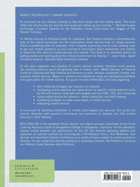 As more users expect to use their mobile devices, librarians will want and need to develop the necessary skills to reach this growing user base. Mobile Devices: A Practical Guide for Librarians will aid libraries and librarians as they go through the process of planning, developing, implementing, marketing, and evaluating mobile services.