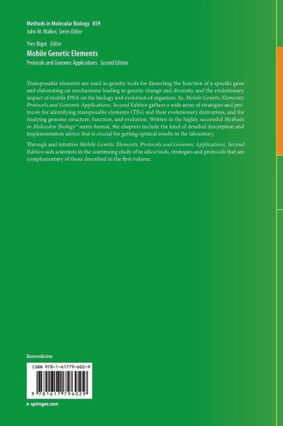Transposable elements are used as genetic tools for dissecting the function of a specific gene and elaborating on mechanisms leading to genetic change and diversity, and the evolutionary impact of mobile DNA on the biology and evolution of organism. In, Mobile Genetic Elements: Protocols and Genomic Applications, Second Edition gathers a wide array of strategies and protocols for identifying transposable elements (TEs) and their evolutionary derivatives, and for studying genome structure, function, and evolution. Written in the highly successful Methods in Molecular Biology(TM) series format, the chapters include the kind of detailed description and implementation advice that is crucial for getting optimal results in the laboratory.