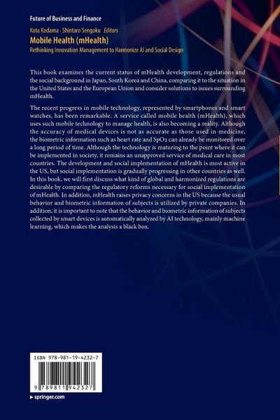 This book examines the current status of mHealth development, regulations and the social background in Japan, South Korea and China, comparing it to the situation in the United States and the European Union and consider solutions to issues surrounding mHealth. The recent progress in mobile technology, represented by smartphones and smart watches, has been remarkable. A service called mobile health (mHealth), which uses such mobile technology to manage health, is also becoming a reality. Although the accuracy of medical devices is not as accurate as those used in medicine, the biometric information such as heart rate and SpO2 can already be monitored over a long period of time. Although the technology is maturing to the point where it can be implemented in society, it remains an unapproved service of medical care in most countries. The development and social implementation of mHealth is most active in the US, but social implementation is gradually progressing in other countriesas well. In this book, we will first discuss what kind of global and harmonized regulations are desirable by comparing the regulatory reforms necessary for social implementation of mHealth. In addition, mHealth raises privacy concerns in the US because the usual behavior and biometric information of subjects is utilized by private companies. In addition, it is important to note that the behavior and biometric information of subjects collected by smart devices is automatically analyzed by AI technology, mainly machine learning, which makes the analysis a black box.