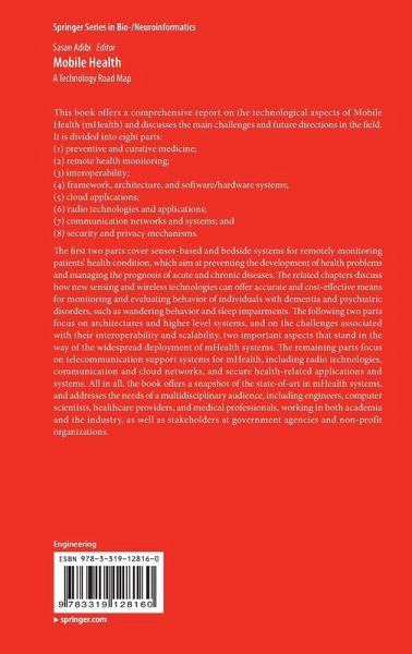 This book offers a comprehensive report on the technological aspects of Mobile Health (mHealth) and discusses the main challenges and future directions in the field. It is divided into eight parts: (1) preventive and curative medicine; (2) remote health monitoring; (3) interoperability; (4) framework, architecture, and software/hardware systems; (5) cloud applications; (6) radio technologies and applications; (7) communication networks and systems; and (8) security and privacy mechanisms. The first two parts cover sensor-based and bedside systems for remotely monitoring patients' health condition, which aim at preventing the development of health problems and managing the prognosis of acute and chronic diseases. The related chapters discuss how new sensing and wireless technologies can offer accurate and cost-effective means for monitoring and evaluating behavior of individuals with dementia and psychiatric disorders, such as wandering behavior and sleep impairments. The following two parts focus on architectures and higher level systems, and on the challenges associated with their interoperability and scalability, two important aspects that stand in the way of the widespread deployment of mHealth systems. The remaining parts focus on telecommunication support systems for mHealth, including radio technologies, communication and cloud networks, and secure health-related applications and systems. All in all, the book offers a snapshot of the state-of-art in mHealth systems, and addresses the needs of a multidisciplinary audience, including engineers, computer scientists, healthcare providers, and medical professionals, working in both academia and the industry, as well as stakeholders at government agencies and non-profit organizations.