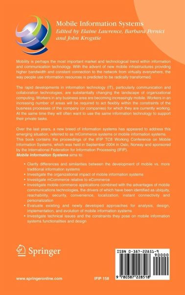Mobility is perhaps the most important market and technological trend within information and communication technology. With the advent of new mobile infrastructures providing higher bandwidth and constant connection to the network from virtually everywhere, the way people use information resources is predicted to be radically transformed. Over the last years, a new breed of information systems, referred to as mCommerce systems or mobile information systems, has appeared to address this emerging situation. In 2000, the IFIP 8.1 WG decided to look into establishing a task group to look closer at this area, and the idea was adopted and extended by IFIP TC8 the following year. After the arrangement of several workshop, this task group has been the driving force behind the arrangement of MOBIS (IFIP TC 8 Working Conference on Mobile Information systems) held in Oslo, Norway, 15-17 September 2004. The objective of the working conference was to provide a forum for researchers and practitioners interested in planning, analysis, design, construction, modification, implementation, utilization, evaluation, and management of mobile information systems to meet, and exchange research ideas and results. Specifically, we tried to use the working conference to - Clarify differences and similarities between the development of mobile vs. more traditional information systems - Investigate organizational impact of mobile information systems - Investigate mobile commerce applications combined with the advantages of mobile communications technologies X Mobile Information Systems - Evaluate existing and newly developed approaches for analysis, design, implementation, and evolution of mobile information systems.