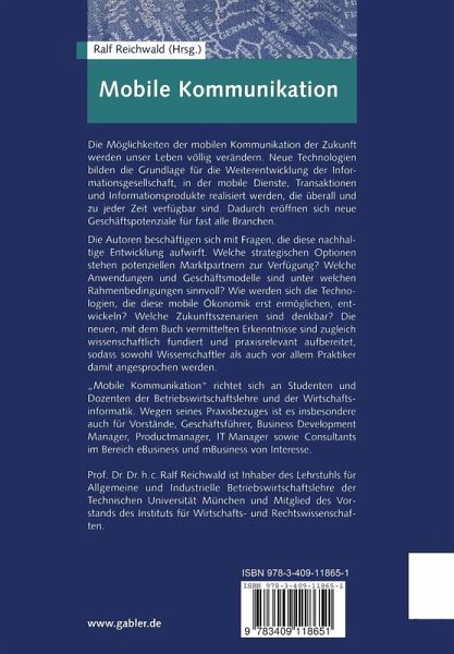 Die Möglichkeiten der mobilen Kommunikation der Zukunft werden unser Leben völlig verändern. Die Autoren beschäftigen sich mit den Fragen, die diese Entwicklung aufwirft. Sie diskutieren strategische Optionen, Rahmenbedingungen, Anwendungen und Geschäftsmodelle, neue Technologien und mögliche Zukunftsszenarien. Die vermittelten Erkenntnisse sind zugleich wissenschaftlich fundiert und praxisrelevant aufbereitet.
