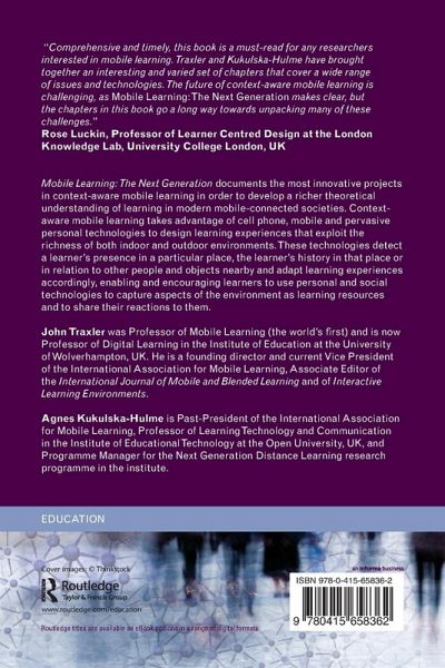 Mobile Learning: The Next Generation documents the most innovative projects in context-aware mobile learning in order to develop a richer theoretical understanding of learning in modern mobile-connected societies. Context-aware mobile learning takes advantage of cell phone, mobile, and pervasive personal technologies to design learning experiences that exploit the richness of both indoor and outdoor environments. These technologies detect a learner's presence in a particular place, the learner's history in that place or in relation to other people and objects nearby, and adapt learning…mehr