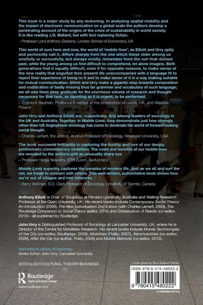 Anthony Elliott is Chair of Sociology at Flinders University, Australia, and Visiting Research Professor at the Open University, UK. His recent books include Contemporary Social Theory: An Introduction (2009), The New Individualism 2nd Edition (with Charles Lemert, 2009), The Routledge Companion to Social Theory (editor, 2010) and Globalization: A Reader (co-editor, 2010) - all published by Routledge. John Urry is Distinguished Professor of Sociology at Lancaster University, UK, where he is Director of the Centre for Mobilities Research. His recent books include Mobile Technologies of the City (co-editor, Routledge, 2006), Mobilities (Polity, 2007), Aeromobilities (co-editor, 2009), After the Car (co-author, Polity, 2009) and Mobile Methods (co-editor, 2010).
