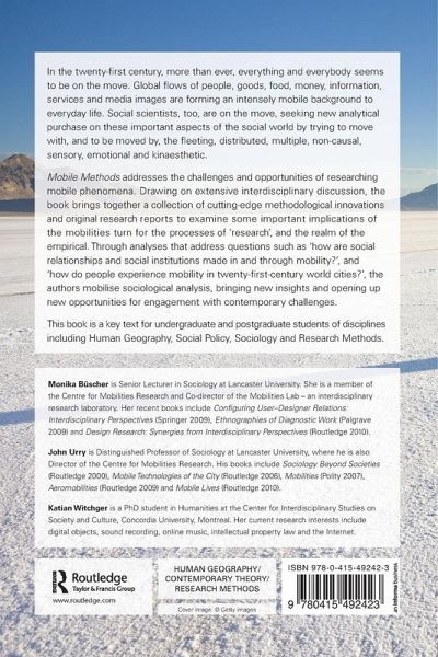 Mobile Methods is an essential collection of social science texts which focus on new mobile methods of social research relating to mobility, place and the social practices and relations that mediate embodied movement through space.