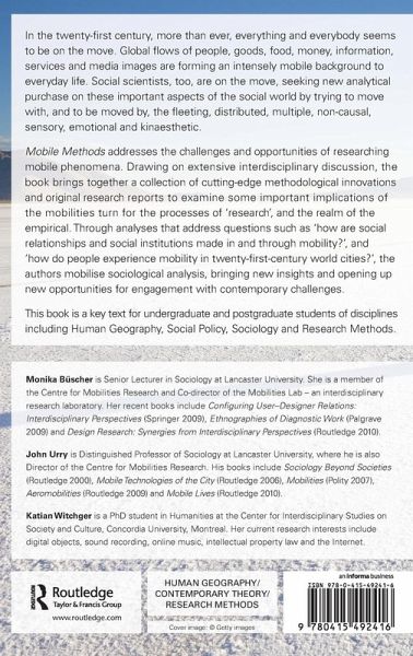In the twenty-first century, everything and everybody seems to be on the move. Global flows of people, goods, food, money, information, services and media images are form an intensely mobile background to everyday life. This book addresses the challenges and opportunities of researching mobile phenomena. Mobile Methods is an essential collection of social science texts which focus on new mobile methods of social research relating to mobility, place and the social practices and relations that mediate embodied movement through space.