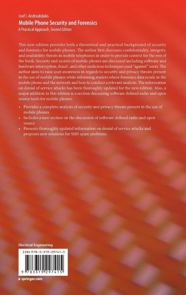 This new edition provides both theoretical and practical background of security and forensics for mobile phones. The author discusses confidentiality, integrity, and availability threats in mobile telephones to provide background for the rest of the book. Security and secrets of mobile phones are discussed including software and hardware interception, fraud and other malicious techniques used "against" users. The purpose of this book is to raise user awareness in regards to security and privacy threats present in the use of mobile phones while readers will also learn where forensics data reside in the mobile phone and the network and how to conduct a relevant analysis. The information on denial of service attacks has been thoroughly updated for the new edition. Also, a major addition to this edition is a section discussing software defined radio and open source tools for mobile phones.