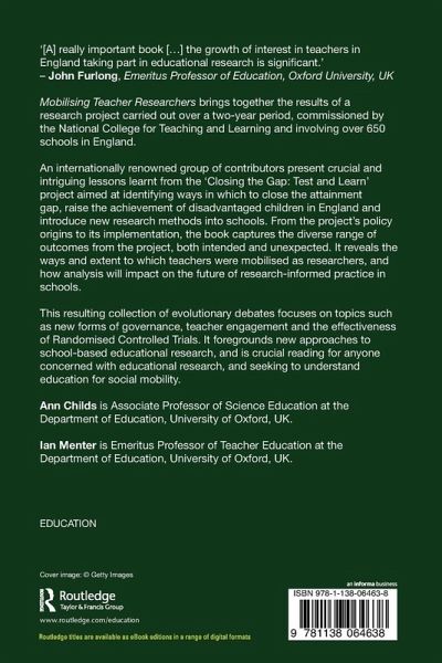 '[A] really important book [...] the growth of interest in teachers in England taking part in educational research is significant.' - John Furlong, Emeritus Professor of Education, Oxford University, UK. Mobilising Teacher Researchers brings together the results of a research project carried out over a two-year period, commissioned by the National College for Teaching and Leadership and involving over 650 schools in England. An internationally renowned group of contributors present crucial and intriguing lessons learnt from the 'Closing the Gap: Test and Learn' project, aimed at identifying ways in which to close the attainment gap, raise the achievement of disadvantaged children in England, and introduce new research methods into schools. From the project's policy origins to its implementation, the book captures the diverse range of outcomes from the project, both intended and unexpected. It reveals the ways and extent to which teachers were mobilised as researchers, and how analysis will impact on the future of research-informed practice in schools. This resulting collection of evolutionary debates focuses on topics such as new forms of governance, teacher engagement and the effectiveness of Randomised Controlled Trials. It foregrounds new approaches to school-based educational research, and is crucial reading for anyone concerned with educational research, and seeking to understand education for social mobility.