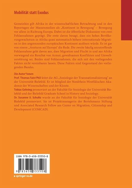 Gemeinhin gilt Afrika in der wissenschaftlichen Betrachtung und in den Reportagen der Massenmedien als "Kontinent in Bewegung" - Bewegung vor allem in Richtung Europa. Dabei ist die öffentliche Diskussion von zwei Fehlannahmen geprägt. Die erste davon besagt, dass ein hohes Bevölkerungswachstum in Afrika quasi automatisch höhere internationale Migration in den angrenzenden europäischen Kontinent auslösen würde. Es ist gar von einem "Ansturm auf Europa" die Rede. Die zweite häufig anzutreffende Fehlannahme geht davon aus, dass Migration und Flucht in und aus Afrika vorwiegend ein Resultat von Armut, gewaltsamen Konflikten und Umweltzerstörung sei. Beides sind Fehlannahmen, die sich mit den vorliegenden Fakten nicht vereinbaren lassen. Diese Fakten sind Gegenstand des vorliegenden Bandes.
