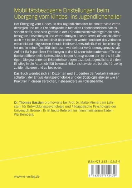 Der Übergang vom Kindesalter in das Jugendlichenalter beinhaltet eine Vielzahl von Veränderungen und neue Freiheitsgrade in fast allen Lebensbereichen. Die Abnabelung vom Elternhaus, der Aufbau neuer sozialer Beziehungen, die Ent- ckung der eigenen Identität, die ersten weichenstellenden Entscheidungen im Bereich der Schule sind nur einige Beispiele für die Herausforderungen, denen sich die 14- bis 16-Jährigen in unserer Gesellschaft stellen müssen. Dabei geht die neue Freiheit auch einher mit einem zunehmenden Mobilitätserfordernis und einer neuen Bedeutungszuschreibung an die Mobilität (Mienert, 2002a). Mobilität ist nicht nur die schlichte Bewegung von einem Ort zu einem anderen bzw. die Überwindung des Raumes zwischen zwei Orten. Mobilität beinhaltet vielmehr auch Prestige, Emotionen und Wünsche. Oder anders aus- drückt, es geht bei der Mobilität weniger um Wege als um Aktivitäten und Wahlmöglichkeiten. Topp (1994) definiert Mobilität auch als eine Möglichkeit, den eigenen Lebensraum zu nutzen und zu erleben. Gerade die individuelle V- kehrsteilnahme erfüllt zahlreiche psychosoziale Funktionen und erfährt damit eine ernorme Bedeutungsaufladung. Neben der Regulation des Selbstwertgefühls und der Versicherung eigener Unabhängigkeit kommt der individuellen Mobi- tät auch eine wesentliche Rolle als Transmissionsmedium für Grenzerfahrungen mit Angst-Lust-Charakter sowie das Erleben heftiger Affekte und Größengefühle zu. Aufgrund des hohen subjektiven Symbolwerts wird das eigene Fahrzeug darüber hinaus auch zur Kompensation sozialer Unterlegenheit genutzt. (Auto- )mobilität gilt als Symbol für Lebensqualität schlechthin und zwar unabhängig davon, ob es diesen Anspruch auch einlöst oder nicht (Heinze und Kill, 1997).
