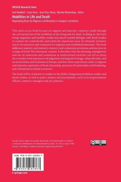 This open access book focuses on migrant and minority cemetery needs through the conceptual lens of the mobilities of the living and the dead. In doing so, the book brings migration and mobility studies into much-needed dialogue with death studies to explore the symbolically and politically important issue of culturally inclusive spaces of cemeteries and crematoria for migrants and established minorities. The book addresses majority and minority cemetery and crematoria provisions and practices in a range of North West European contexts. It describes how the planning, management and use of cemeteries and crematoria in multicultural societies can tell us about the everyday lived experiences of migration and migrant heritage, urban diversity, social inclusion and exclusion in Europe, and how these relate to migrant and minority experience of lived citizenship, practices of territoriality and bordering, colonial/postcolonial narratives.