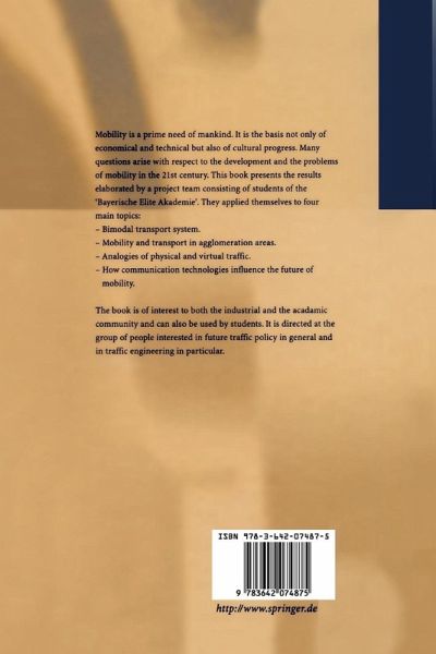 Mobility is a prime need of mankind. It is the basis not only of economical and technical but also of cultural progress. Many questions arise with respect to the development and the problems of mobility in the 21st century. This book presents the results elaborated by a project team consisting of students of the "Bayrische Elite-Akademie". They applied themselves to four main topics: - Bimodal transport system. - Mobility and transport in agglomoration areas. - Analogies of physical and virtual traffic. - How communication technologies influence the future of mobility. The book is of interest to both the industrial and the acadamic community and can also be used by students. It is directed at the group of people interested in future traffic policy in general and in traffic engineering in particular.