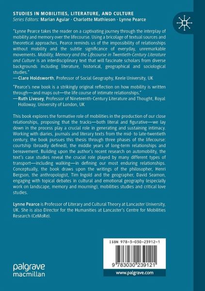 This book explores the formative role of mobilities in the production of our close relationships, proposing that the tracks-both literal and figurative- we lay down in the process play a crucial role in generating and sustaining intimacy. Working with diaries, journals and literary texts from the mid- to late-twentieth century, the book pursues this thesis through three phases of the lifecourse: courtship (broadly defined), the middle years of long-term relationships and bereavement. Building upon the author's recent research on automobility, the text's case studies reveal the crucial role played by many different types of transport-including walking-in defining our most enduring relationships. Conceptually, the book draws upon the writings of the philosopher, Henri Bergson, the anthropologist, Tim Ingold and the geographer, David Seamon, engaging with topical debates in cultural and emotional geography (especially work on landscape, memory and mourning), mobilities studies and critical love studies.