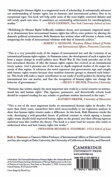 This volume argues that international human rights law has made a positive contribution to the realization of human rights in much of the world. Although governments sometimes ratify human rights treaties, gambling that they will experience little pressure to comply with them, this is not typically the case. Focusing on rights stakeholders rather than the United Nations or state pressure, Beth Simmons demonstrates through a combination of statistical analyses and case studies that the ratification of treaties leads to better rights practices on average. Simmons argues that international human rights law should get more practical and rhetorical support from the international community as a supplement to broader efforts to address conflict, development, and democratization.