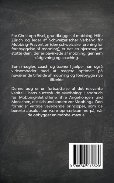 For Christoph Bisel, grundlægger af mobbing-Hilfe Zürich og leder af Schweizerischer Verband für Mobbing-Prävention (den schweiziske forening for forebyggelse af mobning), er det en hjertesag at støtte dem, der er påvirkede af mobning, gennem rådgivning og coaching. Som mægler, coach og træner hjælper han også virksomheder med at reagere optimalt på nuværende tilfælde af mobning og forebygge nye tilfælde. Denne bog er en fortsættelse af det relevante kapitel i hans succesfulde »Mobning: Handbuch für Mobbing-Betroffene, ihre Angehörigen und Menschen, die sich und andere vor Mobbing«. Den formidler vigtige vejledende principper, som de berørte absolut bør være opmærksomme på, når de opbygger en mobbe-manual. .